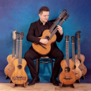 Bohatou historii tohoto krásného hudebního nástroje nám přiblíží Mgr. Art. Jiří Meca, vynikající koncertní kytarista z Opavy, sběratel a znalec dobových nástrojů, který nám umožní nahlédnout do historie a vývoje, ale i do způsobů hry na dobové kytary v konfrontaci se soudobými trendy. Ve třetí části setkání zazní vystavené nástroje i v programu krátkého koncertu.